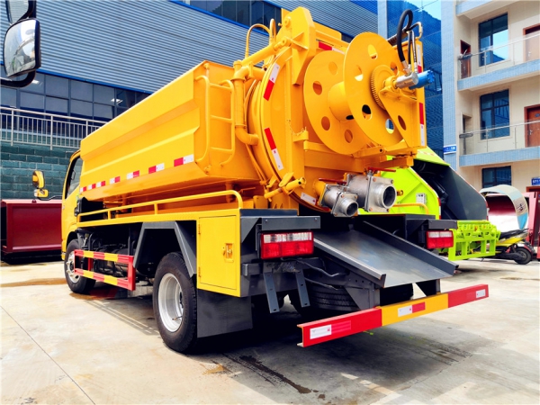吸污部分:3.8方污罐,罐體5mmQ235優(yōu)質(zhì)碳鋼,配淄博SK-9水循環(huán)泵(北方地區(qū)可選裝真空油泵),8米吸污管一根,進(jìn)氣管加過濾網(wǎng),防溢閥加高,后蓋卡扣鎖緊,前視污亮管,后尾部加裝1個力拓牌100mm、150mm的球閥均帶進(jìn)出口,罐體帶舉升功能,后門帶液壓開啟。