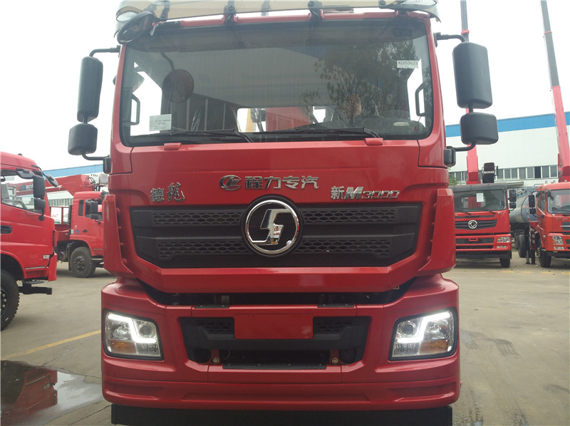底盤配置:陜汽德龍新M300駕駛室 ,濰柴300馬力發動機,陜齒9檔變速箱,雙前橋 5.5噸,雙后橋 11.5噸,11.00R20鐵骨錚錚 絲胎,軸距2100+4575+1400MM,300MM直通三后層大梁,400L鋁合金油箱,ABS,行車記錄儀,原廠空調,原廠取力器,遠程油門,貨箱尺寸8200-8400MM