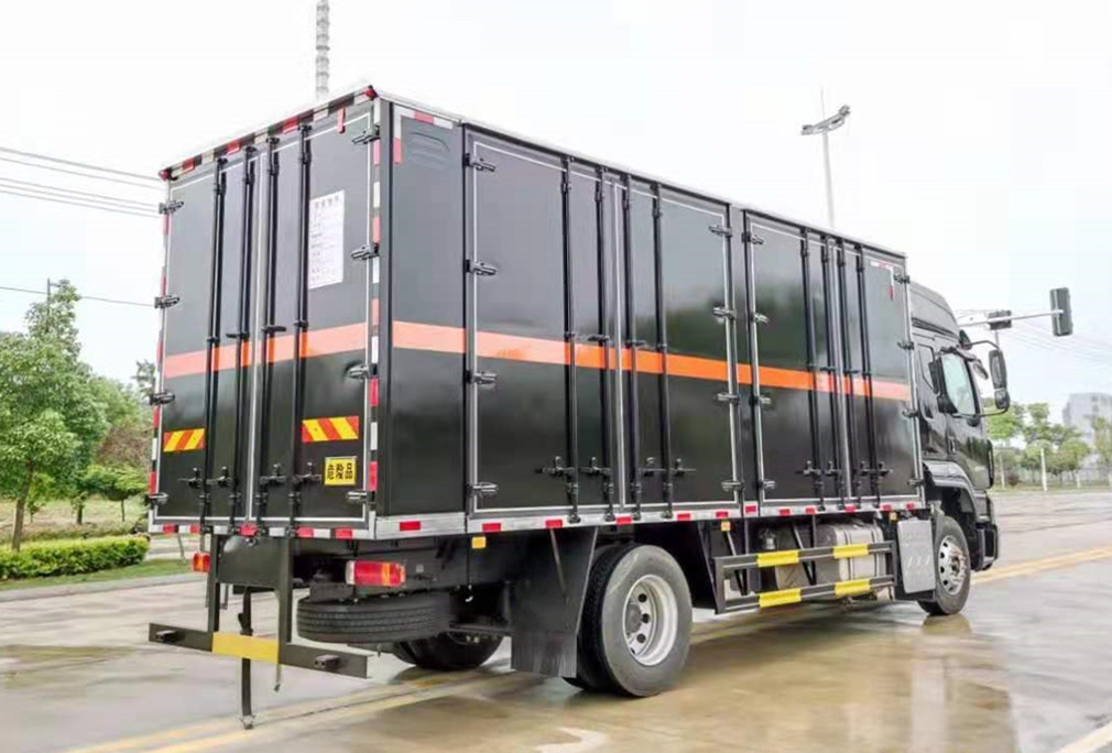 隨底盤選裝M3B駕駛室新面板,選裝導風板,選裝前面板亮條,選裝A柱貼膜,選裝保險杠、翼子板,選裝車門下飾板,選裝臥鋪側窗,選裝綠玻璃,選裝導流罩,選裝高頂駕駛室;該車為危險品運輸車,類型為EX/Ⅲ;廂體頂部密封,不可開啟,廂體兩側選裝不同形式側開門及開門位置或不帶側門,選裝瓦楞板結構.運送爆炸品的項號: 1.1 D,1.1 D,1.1B,1.1B,1.1G ,1.1C,1.3C,1.1 D,1.1 D,1.4G,1.1D,1.1 D,1.1B,1.1B,1.3C,1.1C,1.3C,1.1D 。側/后防護材料為Q235,連接方式:焊接連接,后防護截面尺寸(mm):120×60,離地高度410mm。選裝液壓尾板時,后防護截面尺寸(mm):600×130,離地高度410mm,液壓尾板收起狀態的水平長度為280mm,尾板重量為550kg;該車僅使用排氣管前置、前輪為盤式制動器、裝配子午線輪胎的底盤,轉向輪安裝輪胎爆胎應急防護裝置,后軸采用空氣懸架,安裝導靜電帶;該車裝有ABS,ABS型號/企業:ABS-E 4S/4M/威伯科汽車**系統(**)有限公司,CM4XL-4S/4M/廣州瑞立科密汽車電子股份有限公司;該車安裝具有衛星定位功能的行駛記錄儀,該車裝配有限速裝置,限速80km/h。采用發動機YCS06245-60A,油耗值為:25.8L/100km。選裝雙開門。 |
